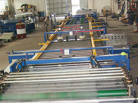 Chenfeng fully automatic duct production line eight (double bite), the design adopts U-shaped structure to improve production efficiency, it integrates multiple functions in one, bite machine bite single side (right angle side), bite machine bite joint angle (Tongyang bone), can complete angle steel flange, common plate flange, Pythagorean flange, can cut flat plate, fold L-shaped, U-shaped, mouth-shaped, can punch support holes, flange edge punch waist-shaped holes, can process plate thickness: 0.5-1.5MM galvanized plate, 0.5-1.2MM304 stainless steel.